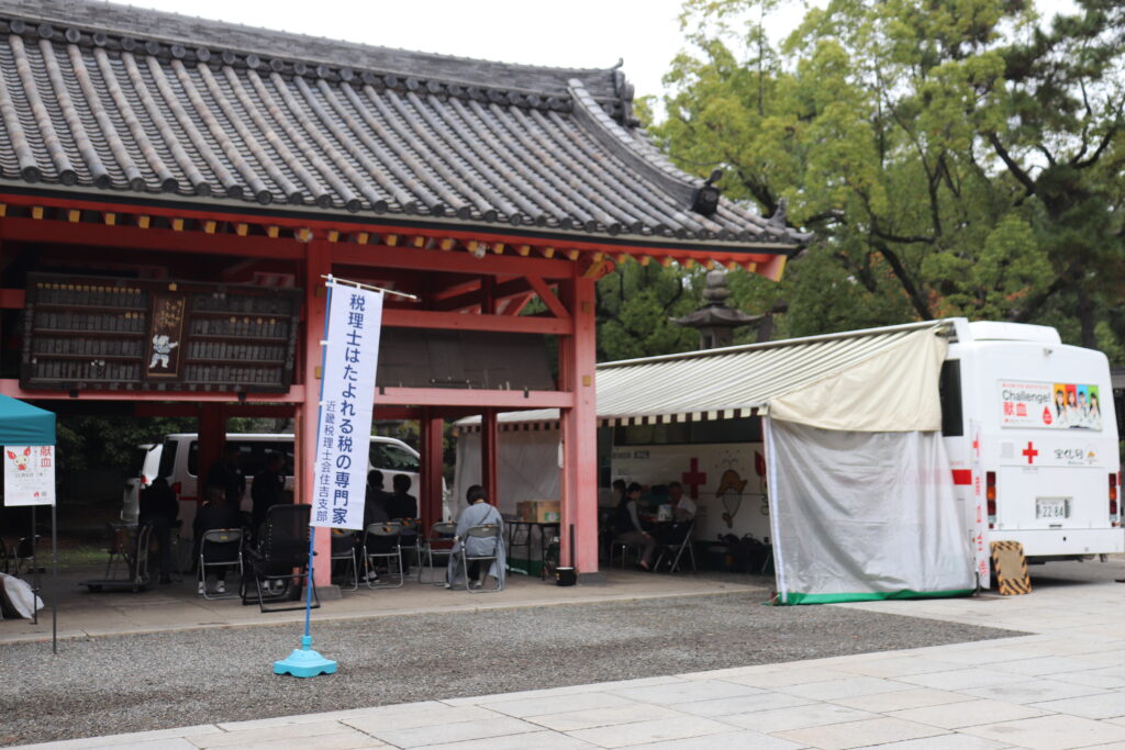令和7年11月6日(木)、住吉大社 たいこばし前にて、近畿税理士会住吉支部主催のボランティア献血が行われました(協賛:阿倍野支部、東住吉支部、西成支部)。